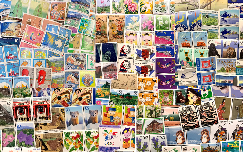 - 未使用の日本記念切手、ふるさと切手、年賀切手等が入ります(シール式含む)。